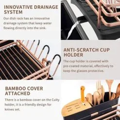 Compact and large capacity: The 2-layer vertical dish rack measures 43 x 32 x 27 cm / 16.93 x 12.6 x 10.63, which occupies a smaller counter space but has a larger capacity