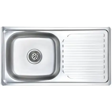 This quality kitchen sink has a sizable basin with an extended drainboard on the side. It is delivered including the strainer and trap and will be a great choice for your kitchen. The drainboard will come in very handy not only when washing dishes by hand but also as an extra place for cutting vegetables. The rectangular sink can be assembled with the drainboard either to the left or right. This durable and corrosion-resistant sink is made of high quality stainless steel with a brushed finish. The included sound insulating pad helps reduce noise.