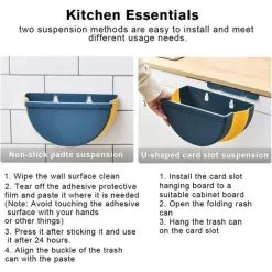 Kitchen Garbage Bins, Folding Hanging Trash Can For Kitchen, Office, Bathroom (Blue) SOEKAVIA