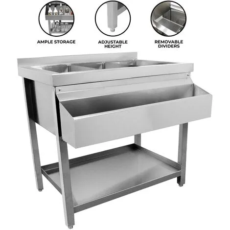 The bar work-station features 3 insulated ice wells with one including a drainer which can be used as a sink. You canāt have cocktails without ice and having the ice on hand is sure to make your cocktail making process a lot quicker!