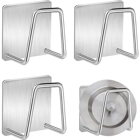 This sink sponge holder can keep counters clear and avoid messes around the sink.   Features:  -Our sponge holder is made of high quality 304 stainless steel and non-trace adhesive material, durable and never rust. – The adhesive layer of our self-adhesive towel rack is thicker than most other hooks and can hold up to 9 lbs / 4 kg, which is good enough for daily use. – Just peel off the protective layer and stick it on the desired position, only suitable for smooth non-porous surfaces. DO NOT stick on painted walls or wallpapers as this will strip your paint or wallpapers. -Not only as a kitchen sink sponge basket, but also can be a sink strainer sink organizer. Use it in the kitchen, bathroom, living room and anywhere you want. -Special sink sponge holder. Open design allows water to drain away, sponge dries quickly in the sink without leaving any exterior mess.  Specifications:  Material: SUS304 stainless steel Surface: brushed finish Dimensions: 45 x 45 x 30 mm (1.7 x 1.7 x 1.18 inches) Load bearing: up to 9 lbs.  The package includes:  4 piece sponge holder  Warm Tips: 1.Our sponge holder is made of sus304 stainless steel which will not rust. There are cheaper options but made of chrome or other steels which will rust within weeks. 2.Not suitable for rough, non-stick surfaces: painted wall, drywall, wallpaper, lime wall, whitewashed wall, rough cement wall, brick wall, concrete wall and uneven surfaces. If you have any questions about our products, please feel free to contact us, we will get back to you within 24 hours