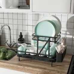 Costway 2-Tier Metal Dish Drainer Collapsible Drying Rack And Drainboard Set