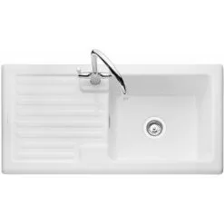 Rangemaster Rustic Kitchen Sink Single Bowl White Ceramic Inset Reversible Waste