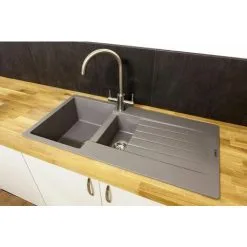 Reginox Harlem15 Kitchen Sink 1.5 Bowl Silver Grey Granite Reversible Waste