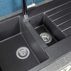 Reginox Harlem15 Kitchen Sink 1.5 Bowl Silver Black Granite Reversible Waste