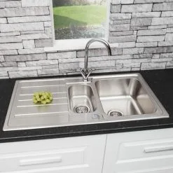 S I A SIA 1.5 Bowl Reversible Stainless Steel Kitchen Sink And Waste Kit W965 X D500mm