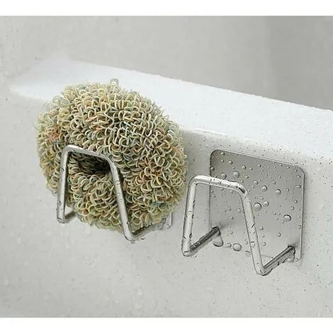 ăDurable materială: the sponge holder is made of stainless steel 304 and non-trace adhesive material, durable and never rust, no need to use electric drill or other tools to install, so it won’t damage not the wall.
