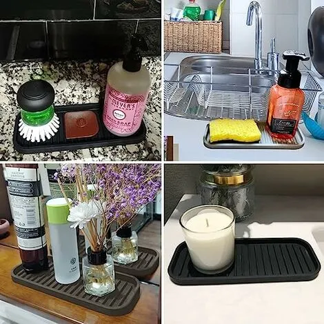 KEEP THE COUNTERTOP CLEAN: The silicone sponge holder is a must-have for your kitchen counter organizer. Being a practical sink tray, the dish sponge holder keeps things close at hand. The sink sponge holder protects the sink area from soap or water and keeps wet sponges off the counter.